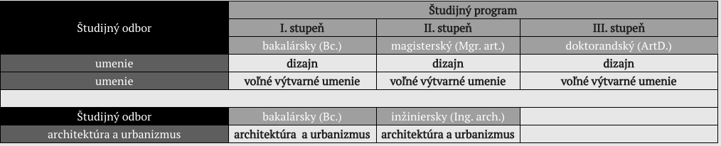 I. stupeň - bakalársky študijný program - dizajn (udeľovaný titul Bc.)